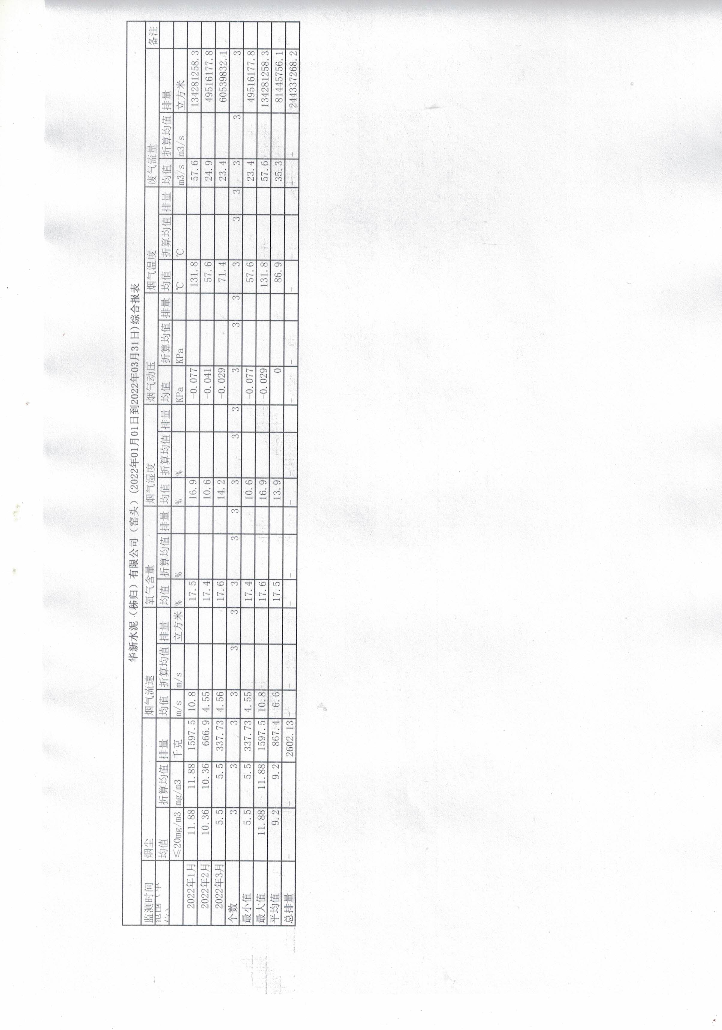5.華新水泥(秭歸)有限公司-窯頭(2022年01月01日到2022年03月31日)綜合報(bào)表
