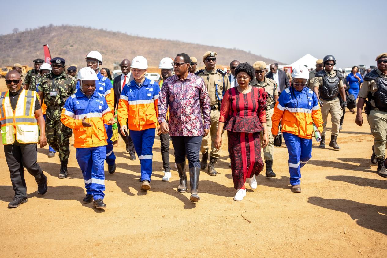 馬拉維副總統(tǒng)邁克爾·烏西等政要陪同視察,當(dāng)?shù)馗鞔竺襟w進行了現(xiàn)場直播。